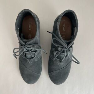 Toms Womens Kala Ankle Boots Booties Gray Wedge Heel Cap Toe Lace Up size 9