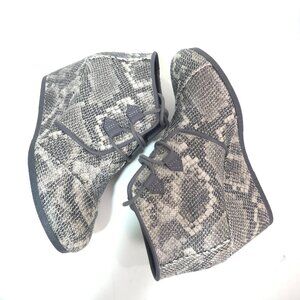 Toms Women’s Kala Grey Vegan Leather Snakeskin Wedge Booties Lace-Up 8