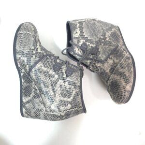 Toms Women’s Kala Grey Vegan Leather Snakeskin Wedge Booties Lace-Up SIZE 8