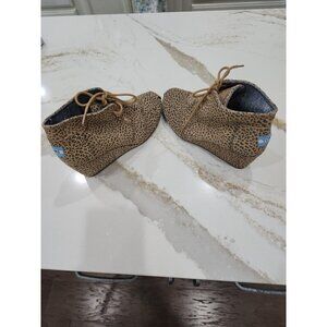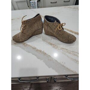 Toms Womens Kayla Desert Wedge Booties Animal Print Suede Lace Up W6