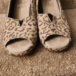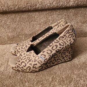 Toms Women's Leopard-Print Peeptoe Wedge Heels Size 6