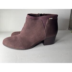 Toms Womens Loren Forest MaroonSuede Pearlized Metallic Cap Toe Heel Booties 11