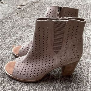 Toms Women's Majorca Peep Toe Booties Perforated Leaf Suede Side Zipper Size 6