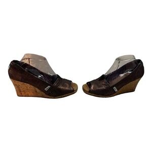 Toms Women's Metallic Copper Calypso Peep Toe Wedge Shoe Size 9.5W