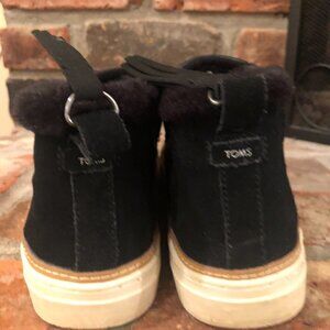A pair of Toms Size 11 Women's Black Croc Embossed Leather Faux Fur Paxton Ankle Boot