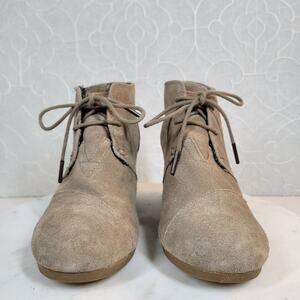 Toms Women's Shoes Size 8.5 Brown Suede Lace-Up Almond Toe Buck Wedges Heels