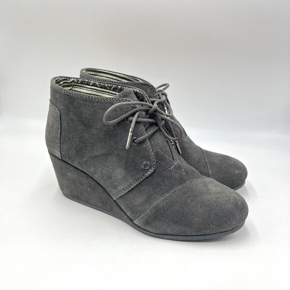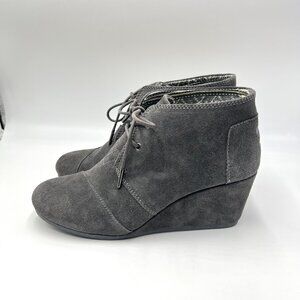 Toms Womens Size 10 10M Gray Suede Leather‎ Wedge Ankle Boots Booties Shoes