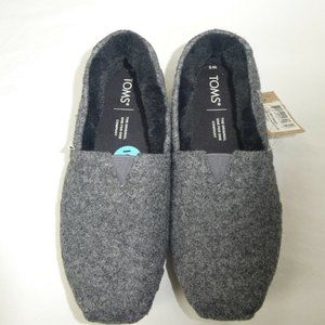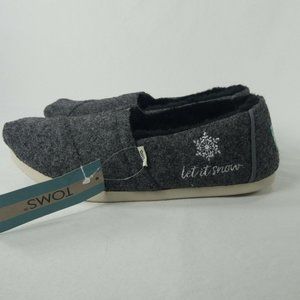 Toms Womens Size 5 Alpargata Gray 2 Tone Felt Let it Snow Embroidery Fuzzy Shoe