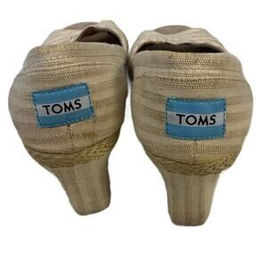 Toms Womens Size 7 Open Toe Striped Fabric High Heel Wedge Casual Shoes