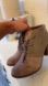 Toms Womens Size 8 Desert Taupe Lunata Burnished Suede Wool Lace-up Bootie new