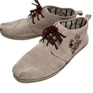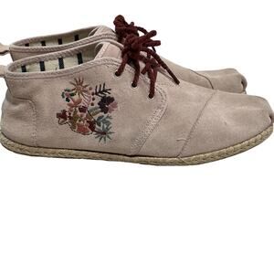 Toms Women’s Suede Booties Sz 12M Pink Embroidered Inside Canvas. Cottagecore. In good condition!