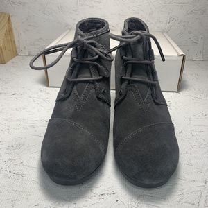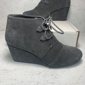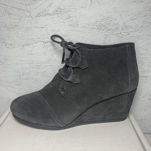 Toms Womens Suede Wedge Booties Desert Gray Sz 9 Heel Lace Up Minimalist