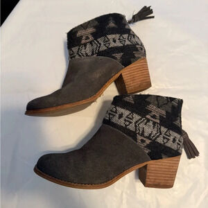 Toms Womens Sz 6.5 Leila Suede Ankle Booties Aztec Southwestern Grey