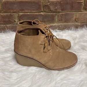 Toms Women’s Tan Suede Desert Wedge Bootie Shoe Size 8.5