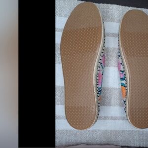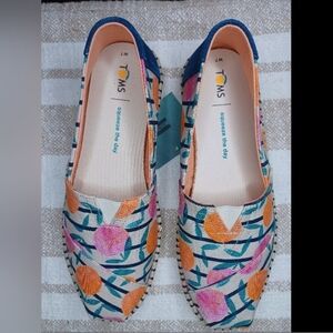 Colorful espadrilles with a lively fruit pattern. Perfect for casual outings.