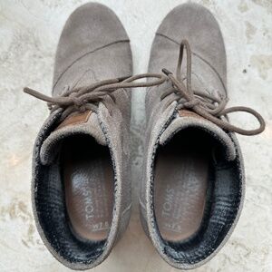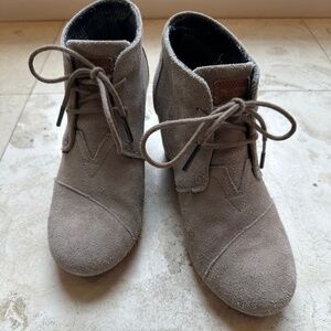 Toms Women’s Wedge Ankle Booties Desert Lace-up Taupe Suede Size 7.5