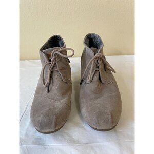Toms Women’s Wedge Bootie Boots Desert Lace-up Taupe Suede Ankle Size 8.5