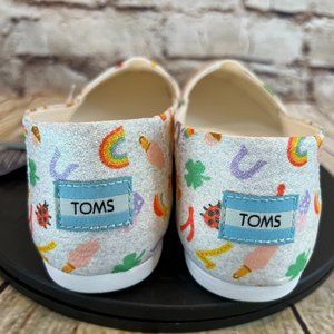 Toms Women's White Metallic Twill Lucky Days Print Rainbow Ladybug Luck Charms