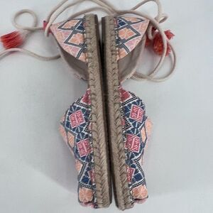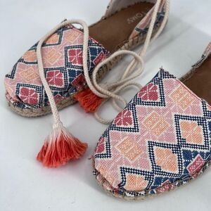 Toms Womens Lace-Up Katalina Chambray Espadrilles Flat Shoes Blue Pink Size 8.5W