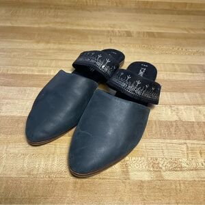 Toms Womens Size 6.5 Closed Toe Black Sandal Flat Slip on Embroidered Strap