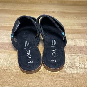 Toms Womens Size 6.5 Closed Toe Black Sandal Flat Slip on Embroidered Strap good condition one small mark on the top