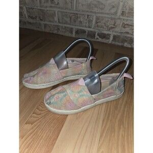 Toms Girls Slip Ons in cute pink tie dye. Gently Used Condition Size 2