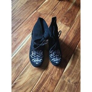 Made with black suede and featuring intricate tribal embroidery, this bootie combines Southwest and Western themes in a unique design. With the signature TOMS branding and a trendy bootie style, this shoe is perfect for adding a touch of flair to any outfit. Ideal for those looking for a chic and on-trend footwear option that showcases their individual style.