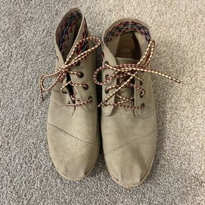 Very comfortable booties by Tom’s. Ankle height. Suede texture. Only worn a few times Size 8.5