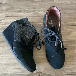 Toms dessert wedge boots black faux snake print accents Size 10