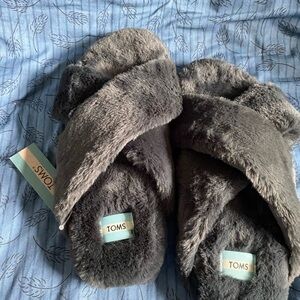 Toms faux fur Susie slippers. Faux fur crossed straps and footbed, new with tags size 9