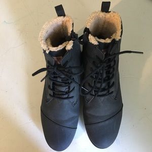 These black leather boots are faux fur lined for the cold weather. A classic lace up boot perfect for cold weather or casual wear. These boots have been worn 1-3 times