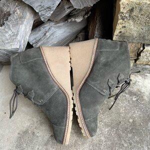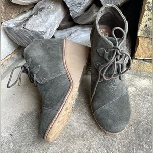 Toms new wedge women’s boots in a green suede color with rubber sole. Sz-9.
