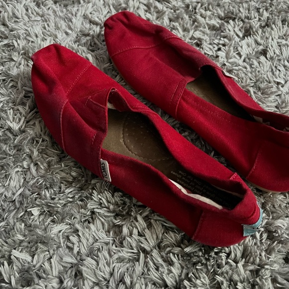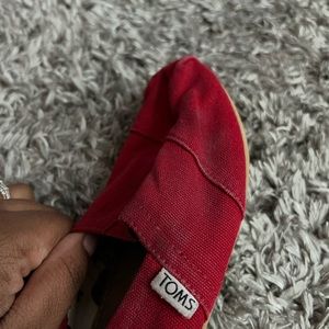 Worn Toms, red canvas shoe