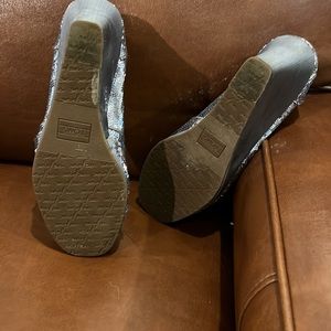 Toms silver sequin size 7.5 wedge. No description of material is shown.