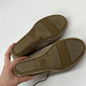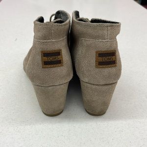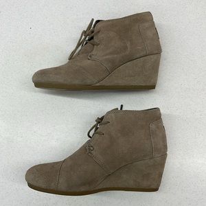 Toms wedge style booties. Suede taupe lace up flannel lined. Like new. Size 8.5