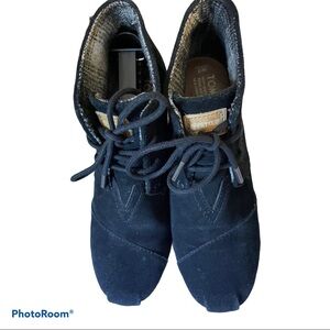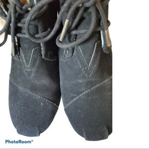 Toms wedge high heel boot for women size 7 wedge height 2.5” suede rubber sole. Black.