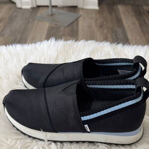 Comfortable black slip-ons with a modern design. Perfect for casual outings.size 8 good condition smoke free home