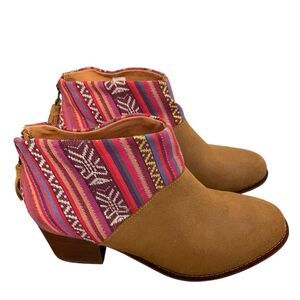 Toms Leila Ankle Boot Tan Suede Aztec Size 8.5 NEW