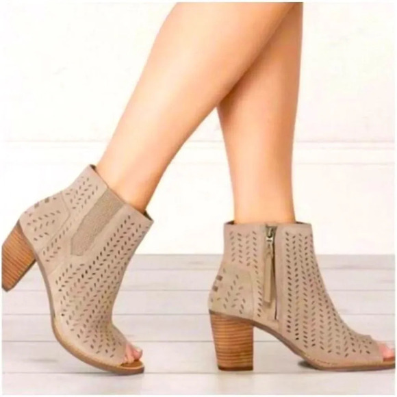 Toms Majorca Peep Toe Stucco Suede Perforated Bootie