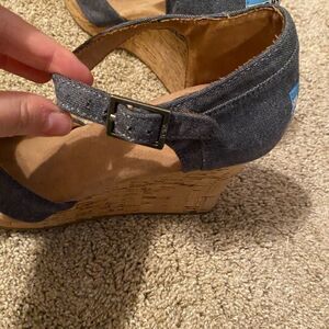 Tom’s Sienna Chambray Denim Cork Wedge Size 10 Very good used condition Buckle ankle