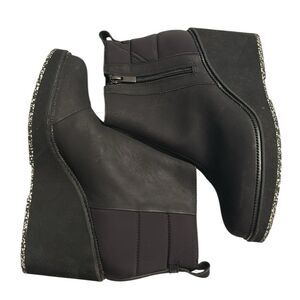 Tom's Waterproof Black Wedge Ankle Leather/Nylon Boots,Zipper closure,NWOB.