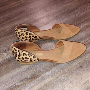 Toms Womens Brown suede and calf hair Leapord Print flats Sz 6.5 Rare Find