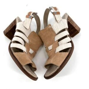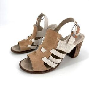 Toms Women's Majorca Woven Textile & Suede Heeled Sandals Neutral Tan Size 6.5