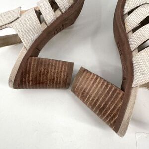 Toms Women's Caged Majorca Woven Textile & Suede Heeled Sandals Neutral Tan Size 6.5