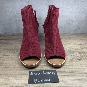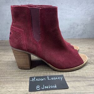 Toms~Women’s~”Majorca” Burgundy Suede Perforated Ankle Peep Toe Heel~Ss 9.5