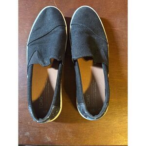 Woman’s size 8W. Comfy slip on style. In excellent condition navy and grey