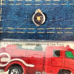 Vintage die-cast Datsun Chemical Fire Truck by Tomy. Durable, collectible, and suitable for ages 3+. Comes in original packaging.