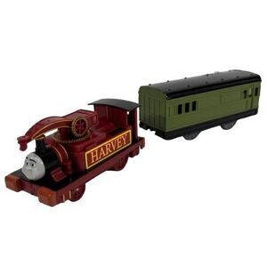 Tomy Trackmaster Thomas & Friends HARVEY & Green Coach Motorized Train. Harvey is in excellent preowned working condition with minimal cosmetic spots from play. My batteries were almost dead, so he is going a bit slow in the video. Battery not included. Comes from a smoke and pet free home. Please see pictures for more details and watch the video below to see him working.