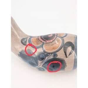 Wonderful folk art piece. Two small chips (one was colored in with marker?) - see photos for detail.