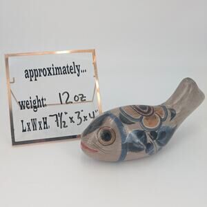 Tonala Fish Figurine Mexican Folk Art Pottery Hand Painted Ceramic Sculpture